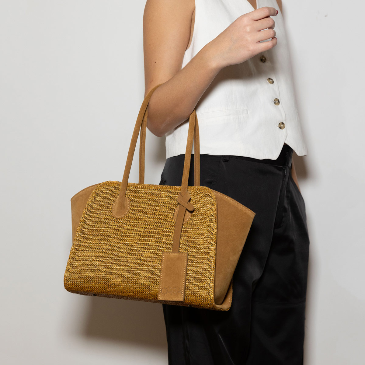 Leonora Suede-Raffia Bag