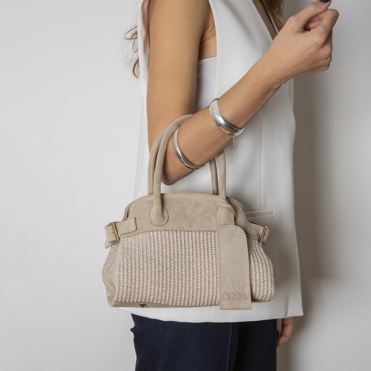 - Handcrafted mini size ‘’zempili’’ raffia handbag with leather details