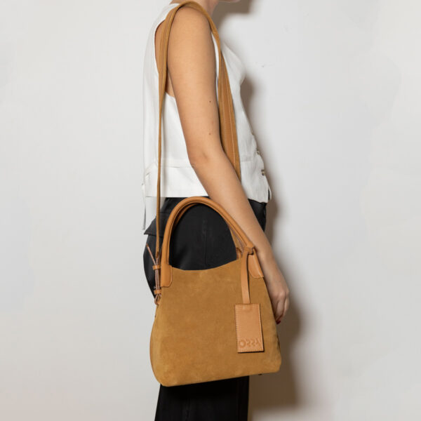 - Handcrafted small-medium suede tote bag with leather details