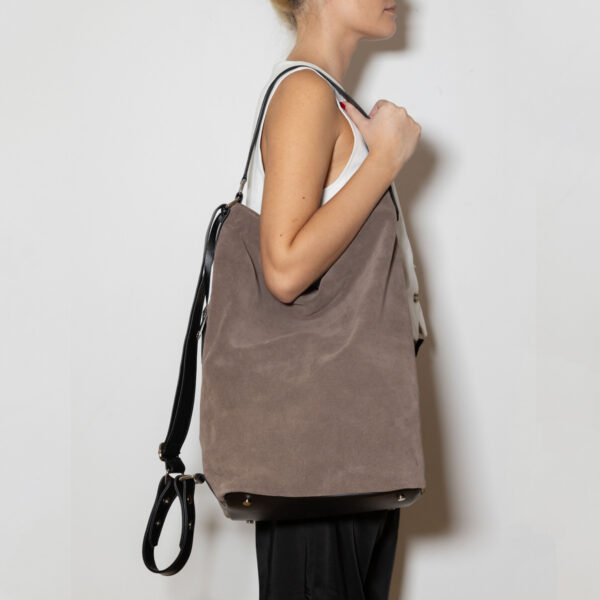 - Handcrafted x-large Suede neverfull backpack – shoulder bag with leather details